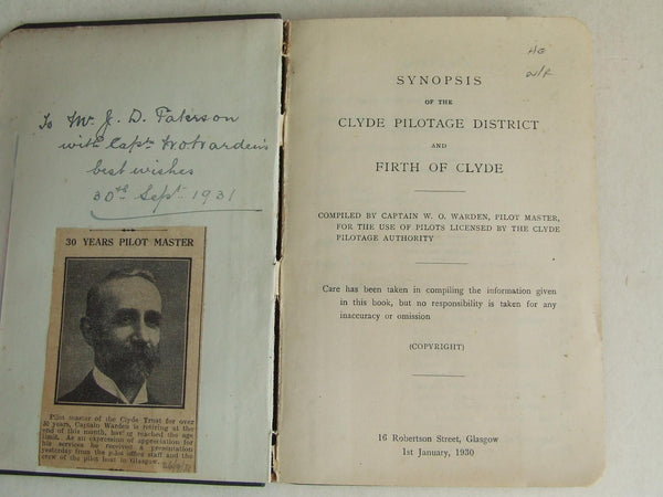 a scarce handbook for the use of Clyde Pilots [titled 'Hand Book for Clyde Pilots' to front cover]. no library holdings recorded