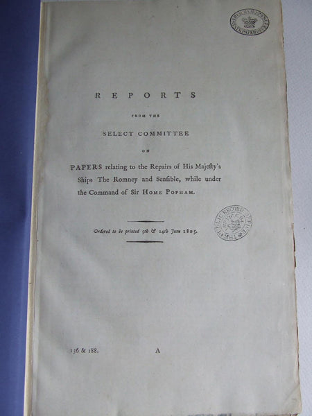Reports from the Select Committee on papers relating to the repairs of His Majesty's Ships the 'Romney' and 'Sensible', while under the command of Sir Home Popham