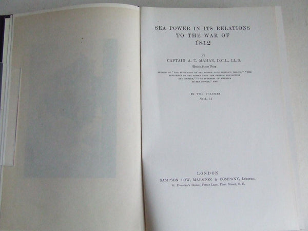 very good bright condition hardbacks.upper hinge slightly strained in volume one. gift inscription to front paste-downs and heraldic book-plate to front free end-papers.as well as a comprehensive history of the naval aspects of the war between Great Britain and the United States, the work also includes a substantial preliminary text on the events leading up to the conflict